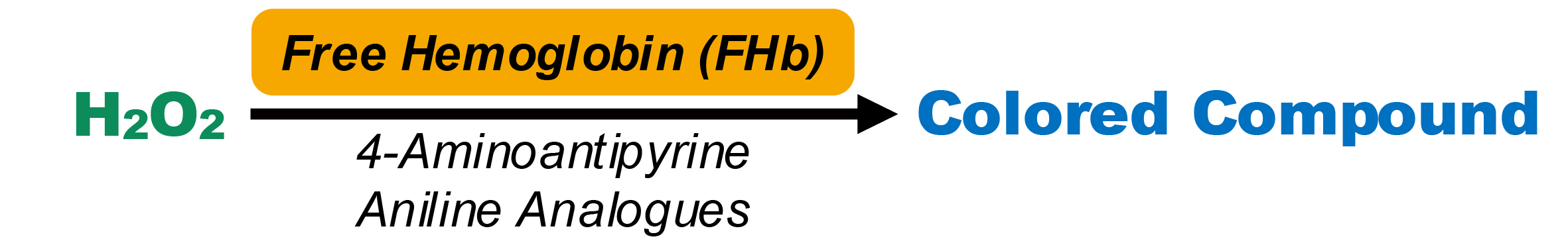 血红蛋白中的亚铁血红素与过氧化物酶具有相似的催化活性,能够催化过氧化氢氧化4-氨基安替比林和苯胺类似物生成紫色化合物,产物在546 nm处具有特征吸收峰,通过吸光值变化即可定量检测游离血红蛋白的含量。